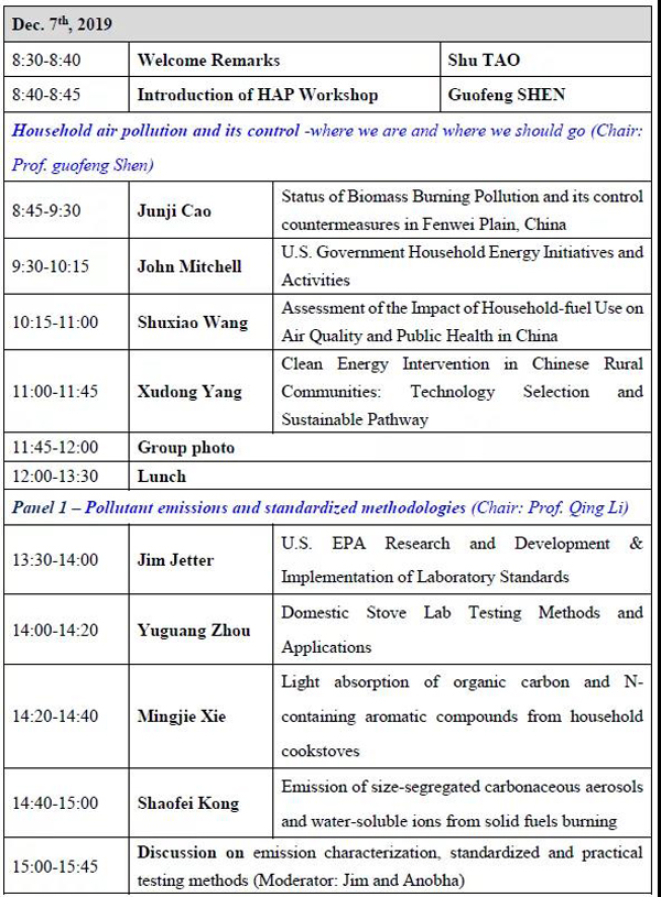 The 1ST household air pollution workshop was held in 2014, chaired by Prof. Shu Tao from Peking University, with the main foci on leveraging research on contributions of household air pollution to outdoor air pollution. The symposium showed great progress on the recent research and provided a good platform for the scientists to share their works and new ideas. A research steering committee was formed. Under the guidance of the steering committee, the 2ND workshop was held in Xi’an China in 2017, chaired by Prof. Junji Cao from Institute of Earth Environment, China Academy of Sciences. In this workshop, international scientists shared the latest research on air pollution, including pollutant emissions from clean fuels and improved cookstoves, air pollution from residential and open burning, air pollutant monitoring such as VOCs, and air pollution control technology and strategy. Given the significant impacts and rapid changes in household energy and air pollution, the committee decided to have the 3RD workshop in 2019. In this workshop, researchers and policy makers from around the world are welcome to share ongoing studies on household energy structure (e.g., stacking, adoption and suspension), indoor and outdoor air pollution, health and climate impacts, co-benefits from clean-energy transitions and interventions.