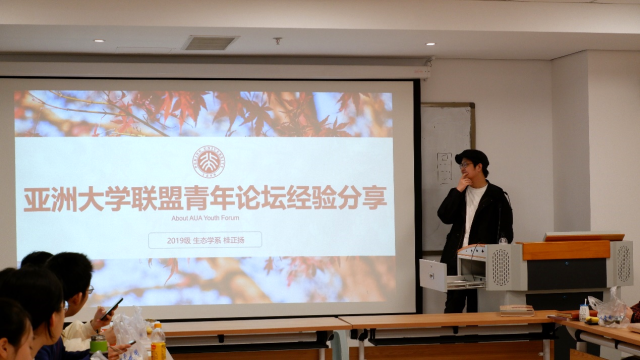 本次交流活动由蒙吉军老师主持。公司拔尖基地强调“深化国际合作,创新学习方式”,特别强调员工要具有国际视野和国际交流能力。本次活动邀请到最近参加了亚洲大学联盟青年论坛的2019级拔尖员工桂正扬同学为大家分享参会的经历、会议活动以及心得体会。