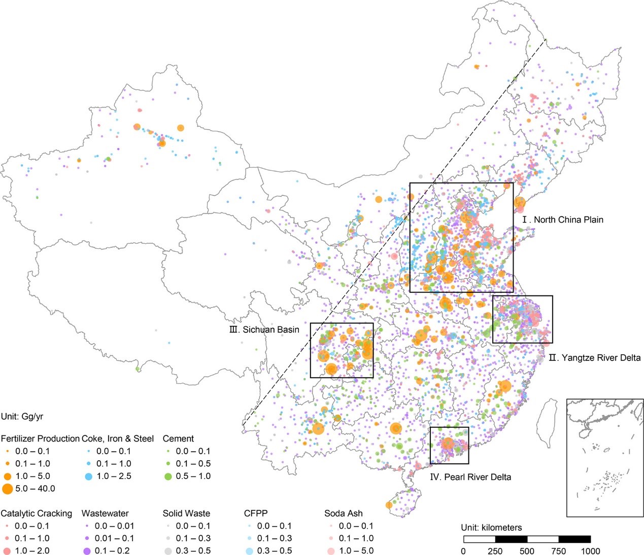 氨(NH3)是二次无机气溶胶的重要前体物,对氮沉降和酸雨有重要影响。以往的研究主要集中于农业源氨排放,而最近的研究指出,中国的工业源氨排放也很重要。然而目前,中国工业部门氨排放尚且缺乏详细的估计。