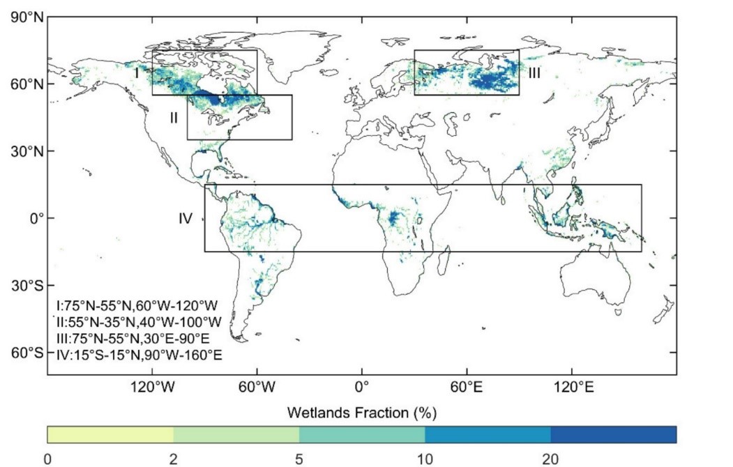如今,人们对湿地恢复以缓解气候变化越来越感兴趣。湿地恢复可显著降低氮污染、甲烷和CO2排放,并改变局部生物物理过程。本研究强调了未来大面积湿地恢复的潜在气候效益。由于不同地区的湿地具有不同的气候效应(升温或降温),因此应认真考虑不同地区湿地恢复的气候效益。