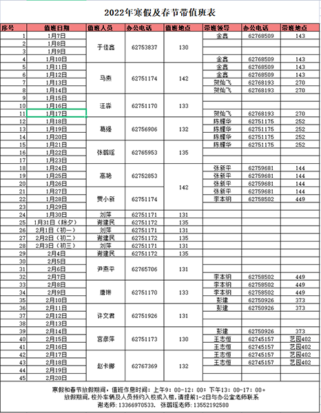 关于2022年寒假及春节带班值班工作的通知