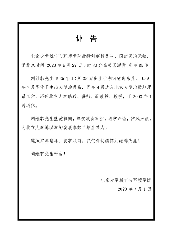 刘继韩先生讣告