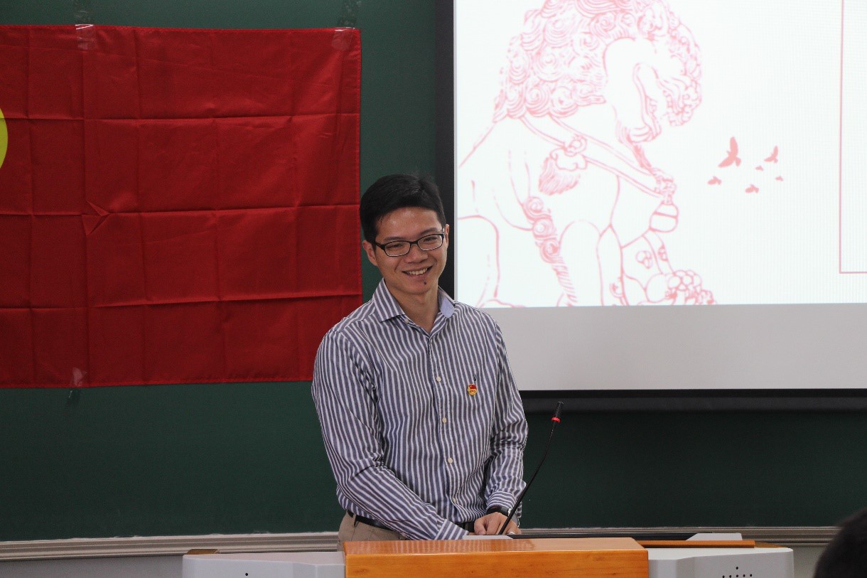 随着老师和同学们嘹亮的团歌声,开幕式正式开始。首先由张新平老师与同学们进行交流。张老师从唱团歌活动每次带给自己内心的激动感受开始,强调了团校教育的重要意义。他指出,团校是我们了解共青团、发扬其优良传统的重要方式。共青团在近代以来无数次大风大浪的洗礼中不断成长,已成为社会主义建设中最有觉悟、最有能力的青年先锋集体。在过去,加入共青团是一种荣誉,更是一种责任;而今天,随着社会主义步入新时代,共青团又将在我们党的伟大征程中扮演更加重要的作用。共青团改革的进一步深化和 “从严治团”思想的贯彻落实,对每一名团员提出了更高的要求。张老师期望同学们在团校活动中能更好地提升思想觉悟,更好地发挥先锋作用。