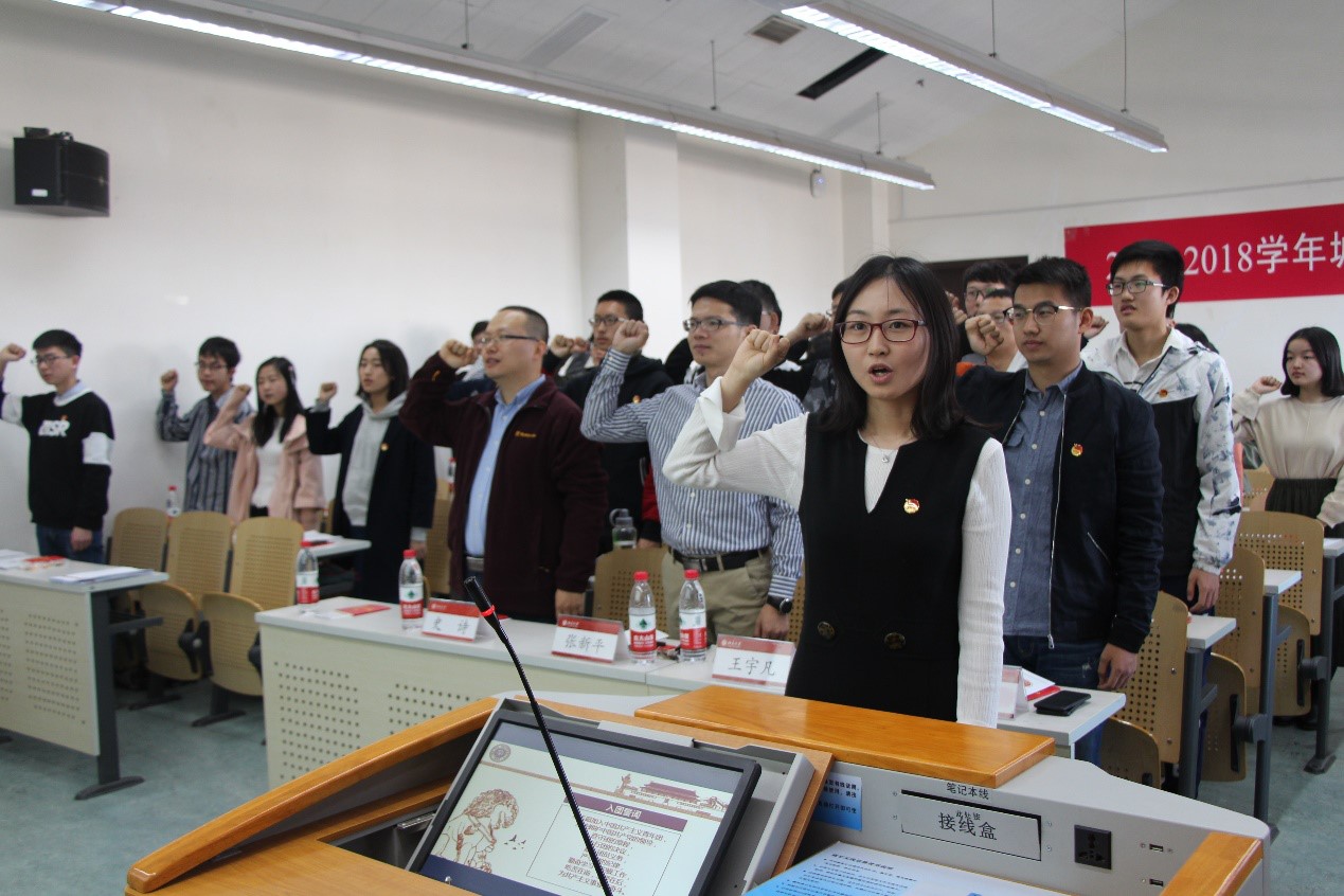 两位老师的讲话受到了同学们的热烈欢迎。接下来,主持人简要介绍了团校的背景和课程设置。随后,在庄严热烈的气氛之中,王宇凡老师带领两院团校学员们重温了入团誓词。铿锵有力的话语,饱含着共青团人的热血与激情。同学们在这短短几行誓词里,体味着和共青团共同成长、共同奋斗的历程,回顾着我们党、我们团光荣的发展历史,更加坚定了不忘初心、牢记使命、坚持不懈、敢为人先的斗争决心和革命理想。