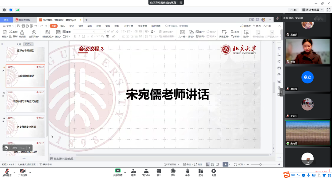 随后,宋宛儒老师发言。她强调“对标定级”是各位团支书交流分享的机会,能让团委老师充分了解团支书工作情况,对于团委工作的顺利开展有着重要的意义。同时,宛儒老师表达了对各位团支书的感谢。