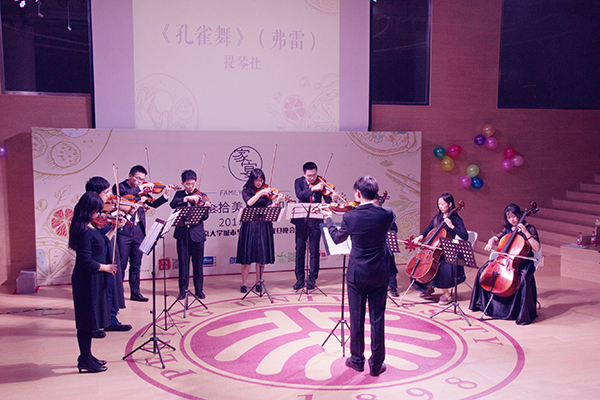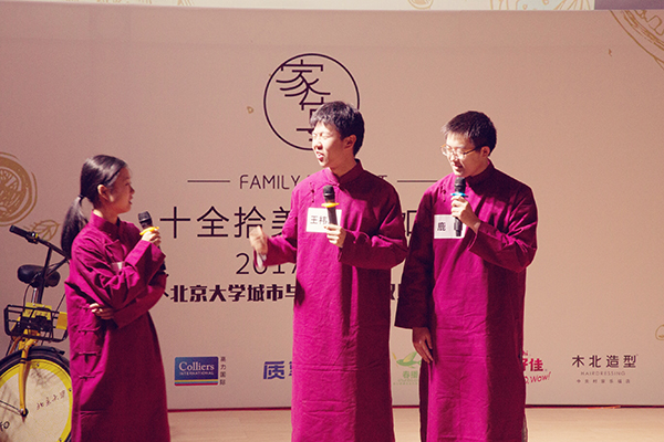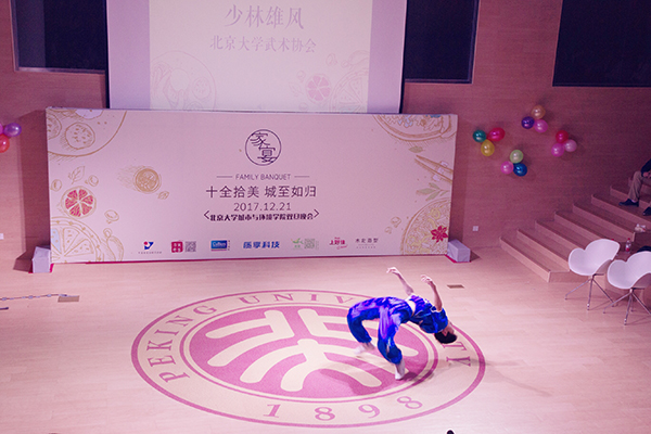 四位主持人分别代表酸甜苦辣四种风味,呈现丰富多样、不同口味的节目菜品,让现场观众真真实实地体验到“家宴”的满汉全席,美食纷呈。晚会在街舞风雷社热辣动感的舞蹈中拉开帷幕,全场氛围热情高涨。接着提琴社的同学们带来悠扬婉转的小提琴演奏《孔雀舞》,观众们沉浸在美妙的旋律中,久久难忘。接下来刚柔并济、豪情万丈的武术表演《少林雄风》行云流水,霸气十足,一个又一个的高难度动作更是震撼全场,观众们欢呼声此起彼伏。在晚会现场的互动板上,一句句正能量的加油词,一条条诙谐搞笑的段子,成为晚会现场别样的风景线。随后, 深情动听的歌曲串烧、独具特色的新疆独舞、奇妙有趣的魔术幻境、幽默诙谐的相声调侃、肺腑情深的诗歌朗诵,为观众们献上一场听觉和视觉的盛宴。由城环女篮带来的荧光舞演出、城环研会自制的lipdub视频、129团队献上的精彩合唱将本场晚会不断推向一个又一个高潮。