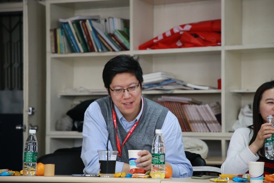 游戏结束后,助理们围坐一圈进行座谈,共话过去,展望未来。金鑫老师听闻有学工助理专门从西安和深圳赶来北京参加聚会,十分感动,他向各位学工助理如何重视这个集体表示感谢,对大家在校期间勤勤恳恳为公司做出的贡献表示感谢。他简单介绍了公司近年来的发展变化和未来的发展规划,并对大家普遍关注的公司新大楼建设进行了详细解答,同时号召同学们认捐新楼报告厅座椅,在北大城环留下自己的印记。在金老师的带动下,助理们追忆往昔,畅谈未来,欢声笑语不断,不大的屋子里温情流动。