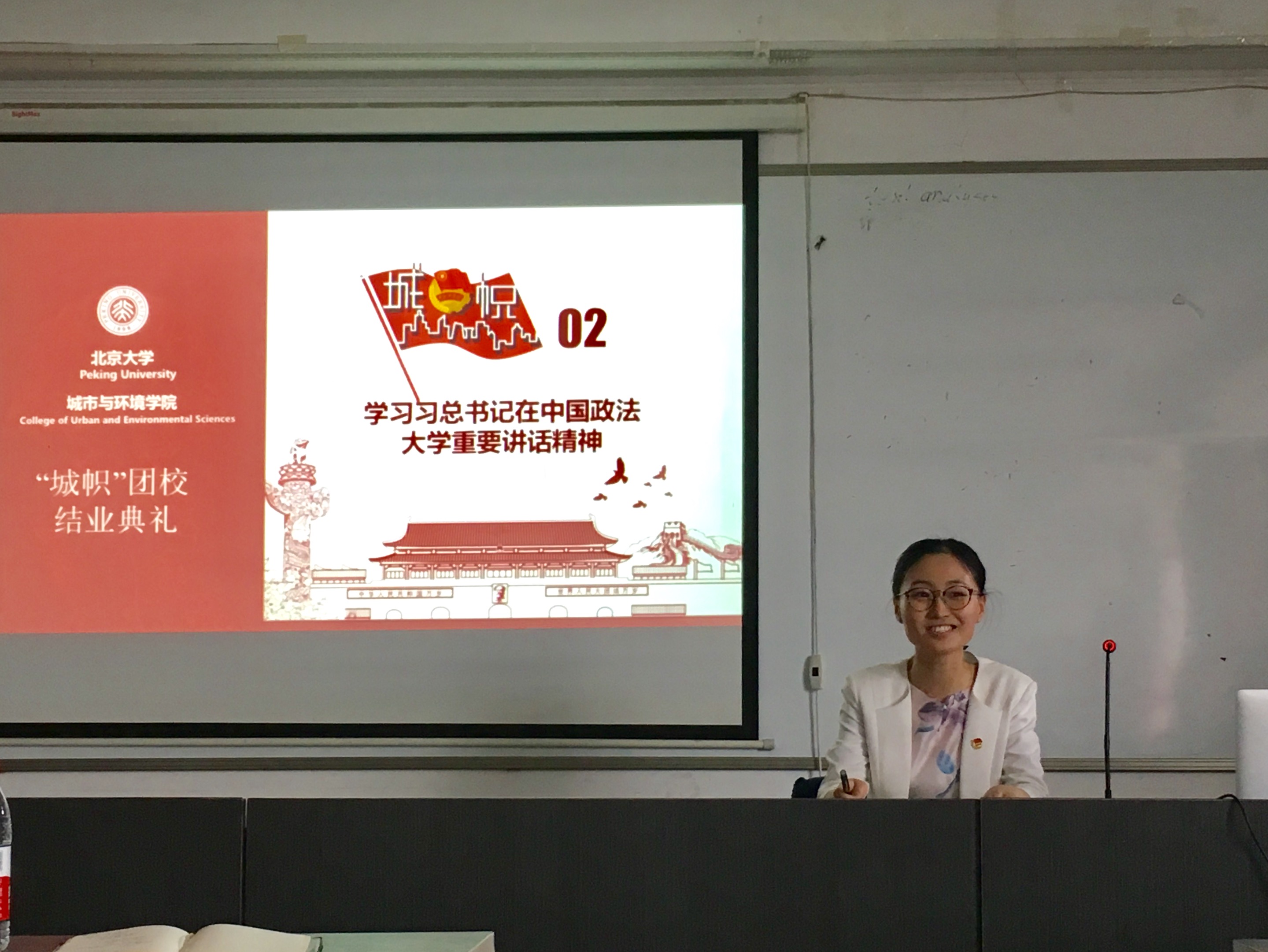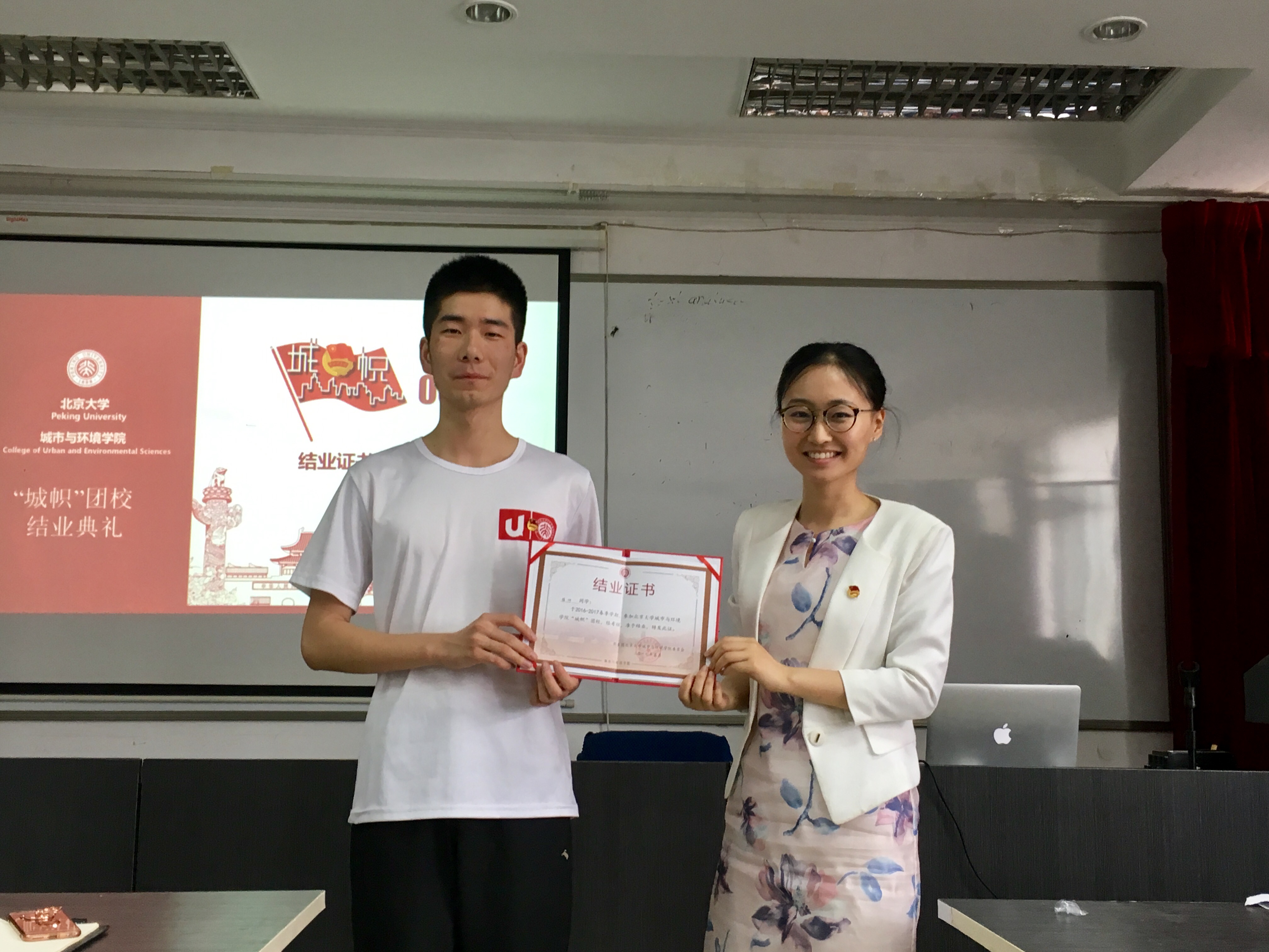 随后,2016级本科生景鹤影带领大家回顾了公司首期“城帜”团校的历程,重温团校开幕式、通识讲座、重走北京中轴线、“绿漾燕园”植树、黑豹野生动物保护站实践、“一学一做”讨论课等一系列精彩活动。2015级本科生徐帅作为优秀学员代表发言,分享了参加团校的初衷,以团校举办的各个活动为主线,畅谈自己的学习收获和心得体会,表达了自己传承五四精神、做合格共青团员的决心。最后,王宇凡老师为学员代表颁发结业证书。