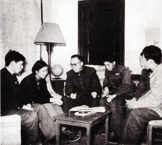 侯仁之先生在自家书房指导1954级员工科研小组(1956年)