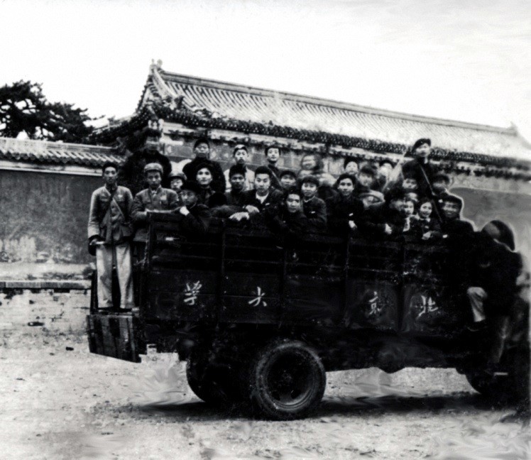 1954级员工乘伟德官方网站校车赴十三陵实习(1954年11月)
