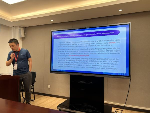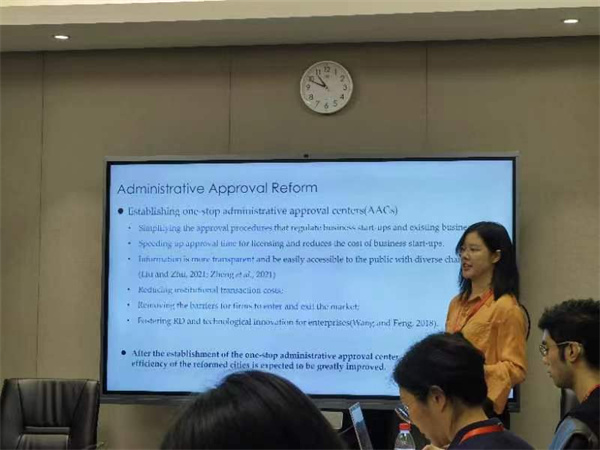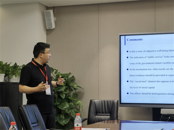 分会场14围绕“政策”这一主题展开,作为本次分论坛的主席,来自湖南大学的华博士首先介绍了汇报人以及评议人。接着,他做了关于有关西部大开发带来财政压力与公共产品供给不足的汇报。之后,来自伟德官方网站的博士候选人盛涵天同学汇报了有关疫情对区域产业动态及城市经济韧性影响的研究。在简短的休息后,来自苏州大学的张博士和来自上海财经大学的李博士分别就中国行政改革能否促进出口扩展以及城市边界扩展对居民满意度以及公共品供给的影响等问题进行研究汇报。
