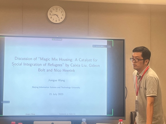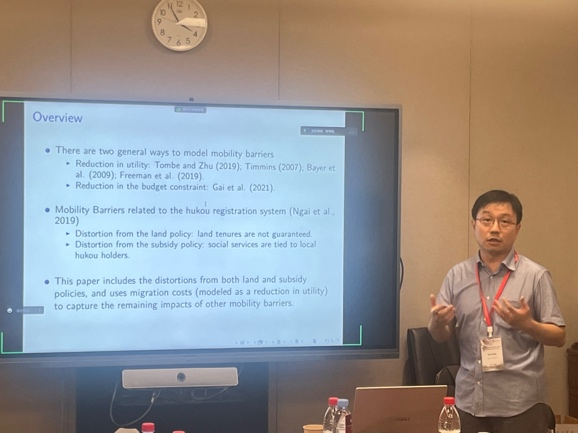 分会场9以“人口流动”为主题,探讨了中国城乡居民迁移、省际劳动力迁移、荷兰难民社会融合等相关问题,该会场由厦门大学的赵敏强副教授主持。赵敏强聚焦中国城乡结构转型下的流动性障碍主题,评估了户籍制度相关的土地和补贴政策的重要性,并进一步识别了主要迁移成本和结构转型驱动力。瓦格宁根大学的Nico Heerink教授研究促进群体间的互动的Magic Mix社会住房项目如何影响荷兰难民的社会融合。北京信息科技大学的王建国副教授探讨了城市人口集聚和迁移对城市生活成本的影响,包括住房、通勤和商品成本。中山大学的王晴副教授使用跨省银行转账数据来研究中国省际人口迁移和资金流动之间的关系。