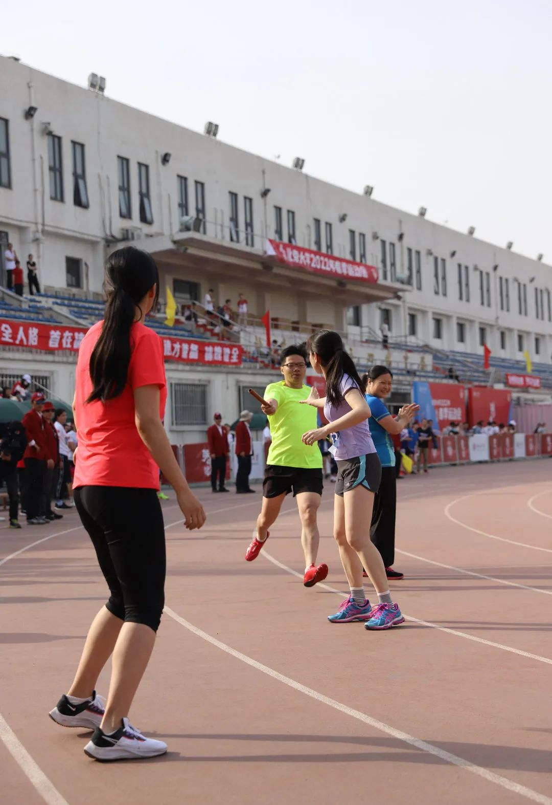 女子A组200米金牌、800米银牌,这是任晓彤老师的战绩;樊凡老师紧随其后,获得女子A组200米第5;崔勇兴老师也不甘示弱,在赛场上坚持不懈,夺得男子A组1500米第三。年轻老师这“风一样”的速度,让人不服不行!