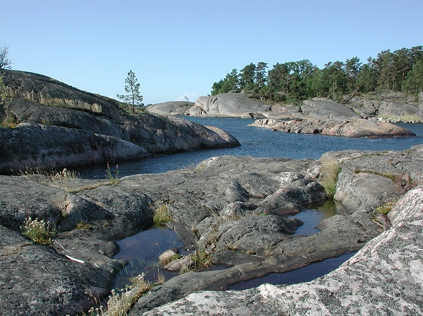 图1. 波罗的海岛屿上的岩池生态系统,其中长期生活着三种水蚤。照片由合作者瑞士巴塞尔大学Dieter Ebert提供。
