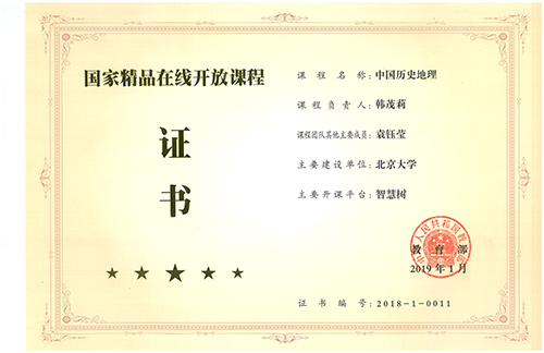 公司韩茂莉教授“中国历史地理”课程入选国家精品在线开放课程