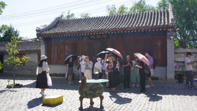 随后,在戴林琳副教授的带领下,两校师生对北京市小汤山镇酸枣岭村的现状进行了调研。小汤山镇和村委有关负责同志介绍了小汤山镇旅游发展以及酸枣岭村的整体发展情况及面临的主要困难,并带领师生实地考察了村中的古井、农宅、大兴寺、未利用土地以及现有产业等。为进一步探索北京乡村振兴的实践经验,师生们前往辛庄村调研,在与新乡民的交流中了解了艺术与文化带动该村发展的历程与路径。