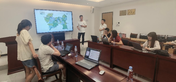7月6日上午,两组员工分别汇报了规划方案。小汤山镇穆海龙副镇长、酸枣岭村苏继军书记,伟德吴必虎教授、戴林琳副教授,以及香港大学城市规划及设计系周加利研究型助理教授和贺琼博士后研究员采用线上线下联合方式进行了项目点评。与会的地方领导与专家肯定了两组规划方案的优点,同时从理论与实践的综合角度提出了优化意见,加深了同学们对国土空间规划的理解。