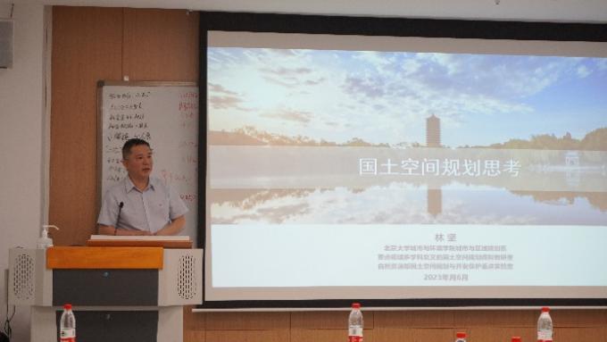 同日下午,林坚教授以“国土空间规划思考”为题,深入讲解了“多规合一”与“五级三类四体系”相关理念。戴林琳副教授通过天津市武清区国土空间总体规划案例,向师生展示了国土空间规划的实践过程。北京市城市规划设计研究院研究室徐勤政副主任以“自发秩序与北京农村城镇化”为题,分享了北京农村城镇化的主要逻辑以及农村自发秩序形成的实践案例。