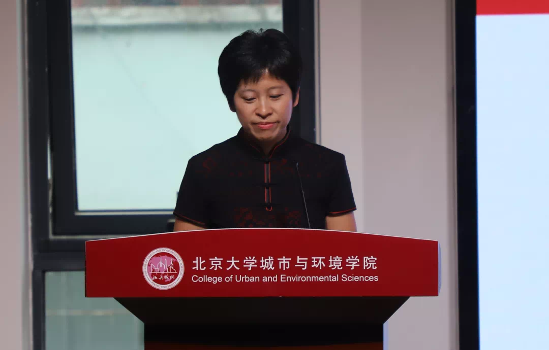 随后,公司2001级员工,自然资源部国土空间规划局主题功能区处二级调研员谢秀珍女士作为院友代表致辞。她首先对公司的邀请表示了感谢,接着她用 “包容”两字概括了城环对她人生的影响,提出待人待物应保持一颗包容之心,接纳他人悦纳自己,同时强调在学习、生活乃至于未来的工作中同学们应该具有更广阔的视野,更高远的格局。最后她希望同学们用心享受校园生活,怀揣北大城环人的包容和气度,服务社会,创造未来。