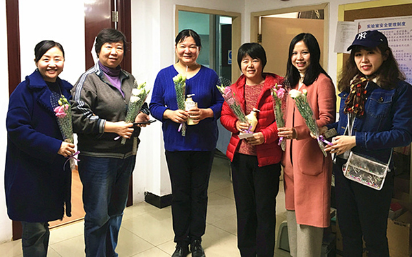 3月7日,满载礼品、饱含爱意的工会小分队出现在逸夫贰楼,向每位女教师送去自制的贺卡、美丽的鲜花和暖心小礼品,同时致以节日的温馨祝福。收到礼物的老师个个洋溢着幸福的微笑,全院沉浸在一片欢声笑语,喜悦的节日氛围中。“美丽绽放”三八节系列活动以鲜花拉开序幕。