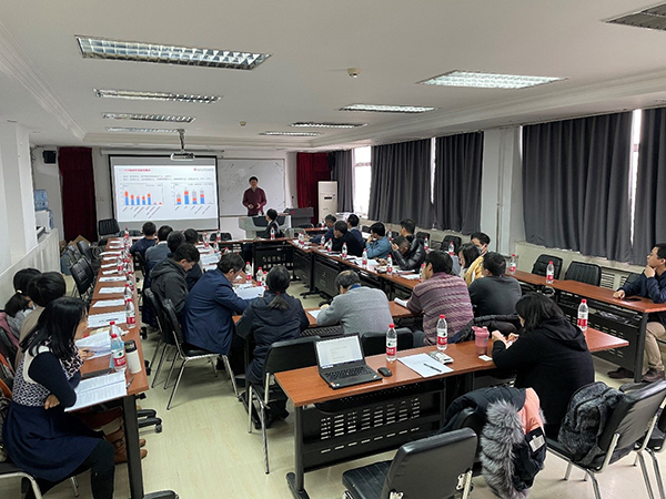 经理贺灿飞首先发言,他展望了公司本年度在队伍建设、人才培养、教学科研、新楼建设、疫情防控等方面的工作计划,强调了“十四五”期间人才培养对于学科发展的重要性,希望本学期各专业教师能够合力创新,提升公司相关学科的国际竞争力。