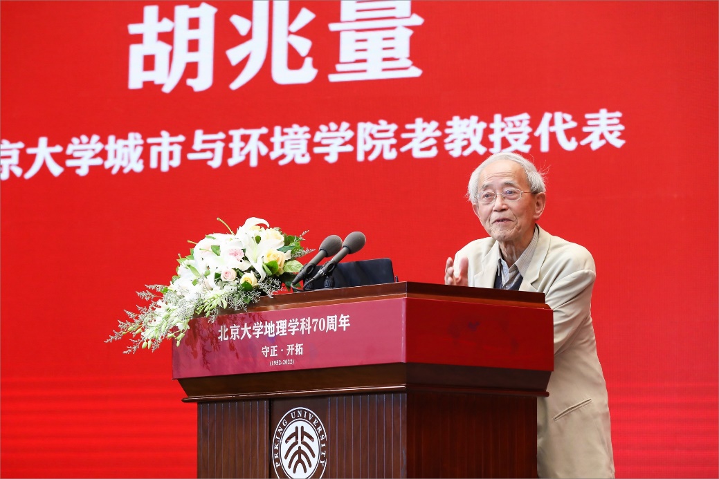 胡兆量讲述了北大地理学前辈不忘初心、艰苦奋斗的历程,并通过侯仁之伉俪阐释了地理学打造体格、塑造人格的魅力。他以铿锵有力的“地理学科,山河相伴,日月同欢,指点江山,观景醉人,观物醉心,心胸开阔,身体健康”作为结语,祝愿所有地理学人永葆青春活力,奋发踔厉前行。