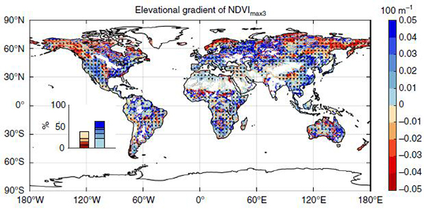 该研究成果以“Divergent changes in the elevational gradient of vegetation activities over the last 30 years”为题发表在《自然-通讯》(Nature Communications)(DOI:10.1038/s41467-019-11035-w)。2018级硕士研究生高蒙迪为第一作者,朴世龙教授为通讯作者。