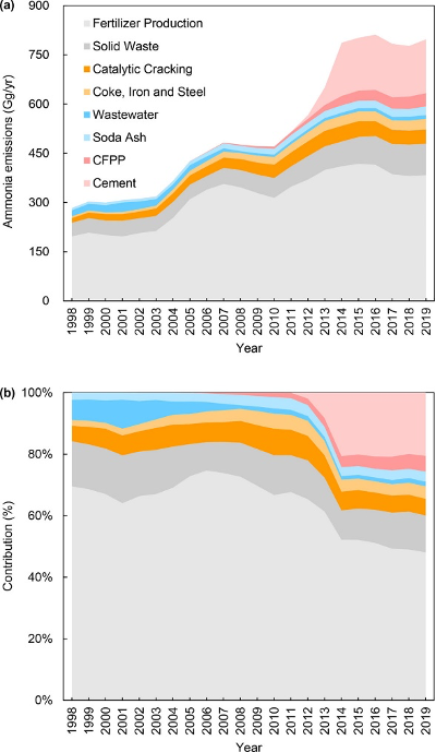 氨(NH3)是二次无机气溶胶的重要前体物,对氮沉降和酸雨有重要影响。以往的研究主要集中于农业源氨排放,而最近的研究指出,中国的工业源氨排放也很重要。然而目前,中国工业部门氨排放尚且缺乏详细的估计。