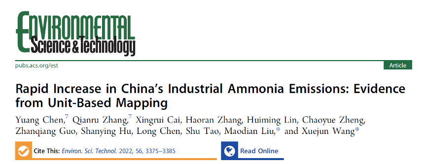 论文成果以“Rapid increase in China’s industrial ammonia emissions: evidence from unit-based mapping”为题发表在《Environmental Science & Technology》杂志上。2018级本科生陈宇昂和2017级博士生张倩茹为论文共同第一作者,王学军教授和耶鲁大学环境公司刘茂甸博士后研究员为论文共同通讯作者。该成果获得国家自然科学基金(41630748、41977311、41821005),地理科学拔尖人才培养计划等项目资助。