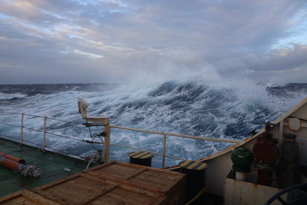图7 返程时“科学”号在西太平洋在巨浪中前行