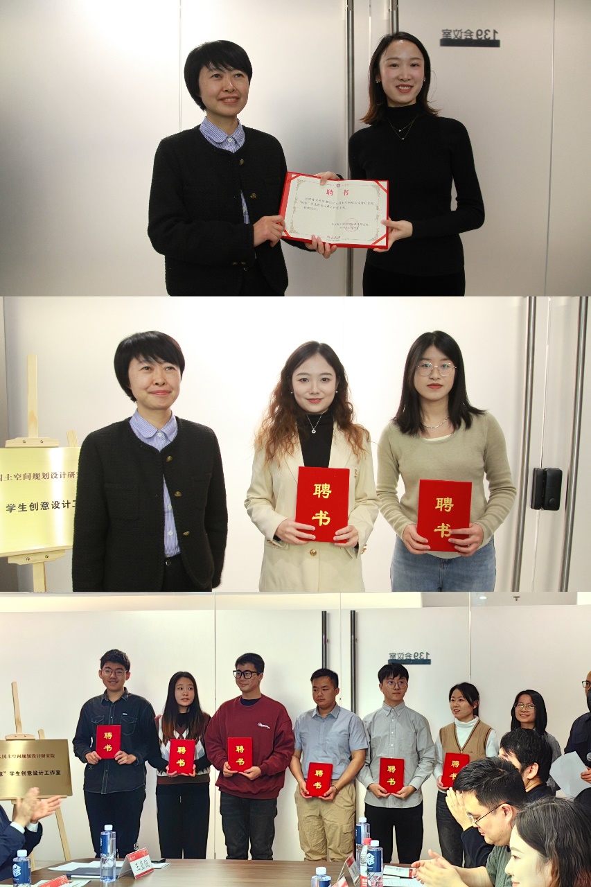 北大国土空间规划设计研究院副经理刘明鑫宣读了工作室成员聘任名单。聘任宋宛儒为工作室指导教师,聘任赵千惠为商务总监,张慧新为财务总监,聘任赖雨亲、刘润轩、陆莹、黄喆、黎嘉厚、王鑫磊、张可欣为设计师。