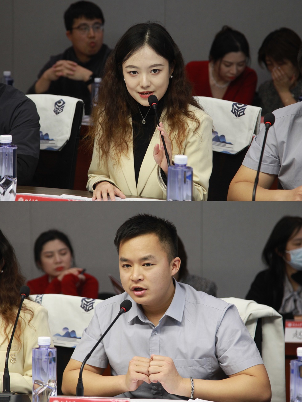 员工代表发言环节中,2023 级硕士研究生赵千惠从工作室成立的背景及意义,团队成员和组织架构,以及主营业务三个方面对工作室进行了简要介绍,并表达了对未来承接更复杂设计项目,产出更高质量设计产品的信心。2019级本科生黄喆简要回顾了自己学习和参与创意设计的历程。他表示工作室为广老员工设计师积累经验、施展才华、学习创新创业技能提供了有效平台。他由衷的感谢各位领导、老师、院友和嘉宾们的指导和支持,希望能在工作室中饱含“城”意,锐意进取。