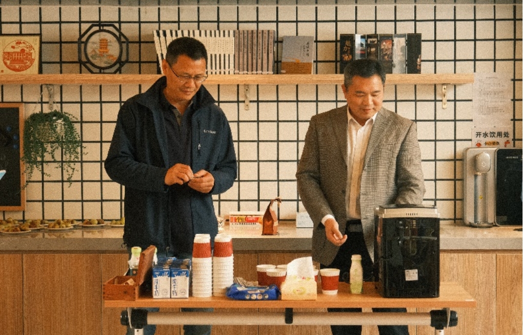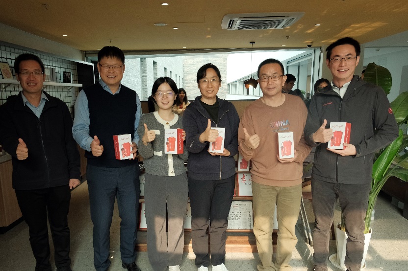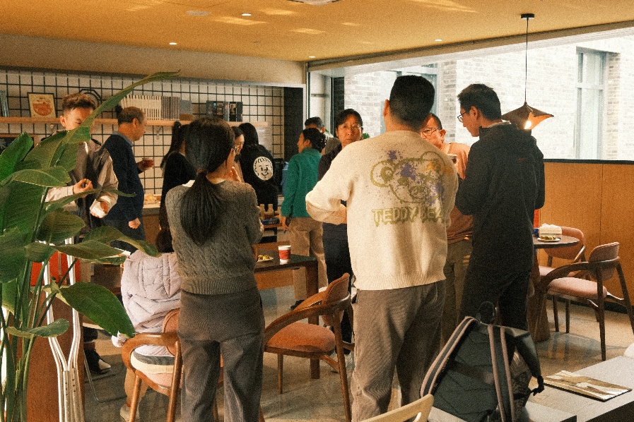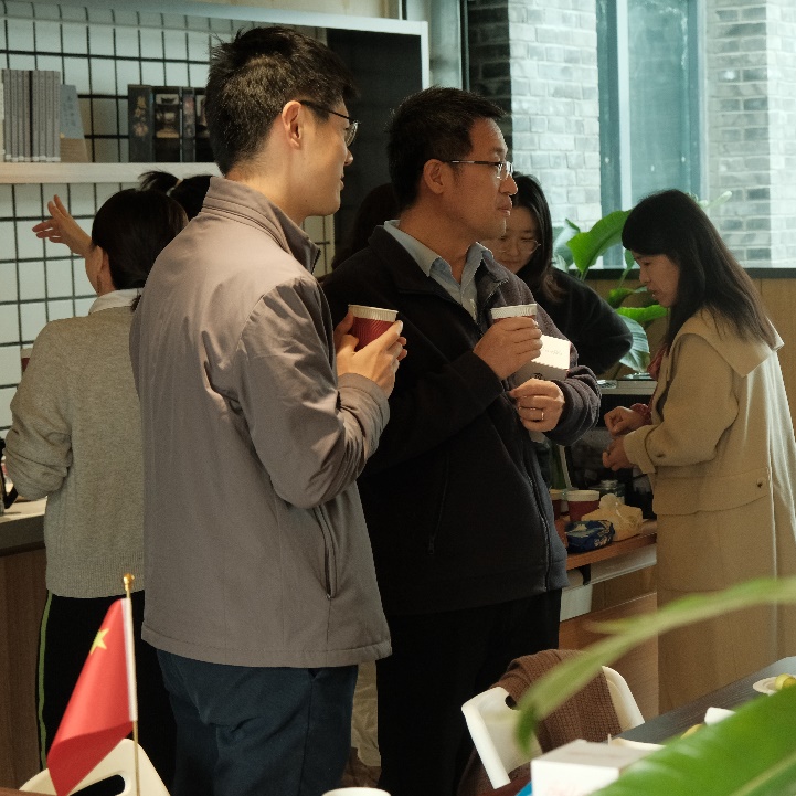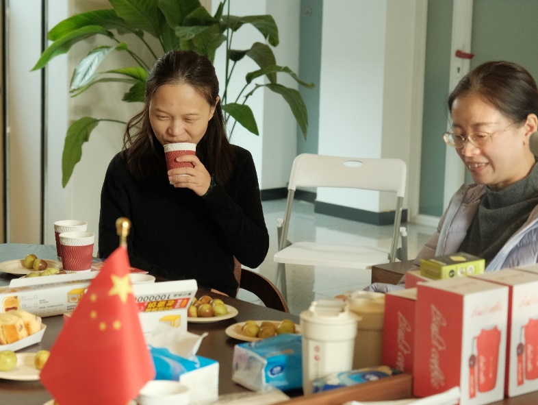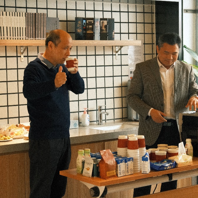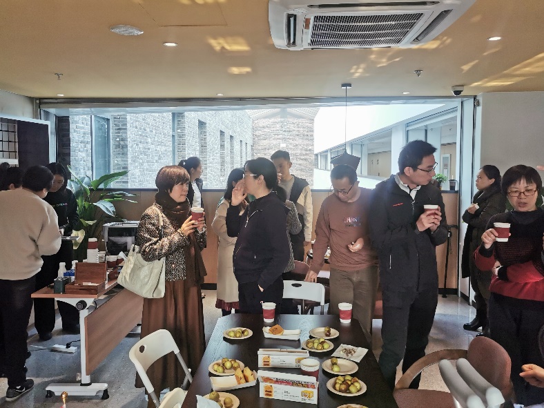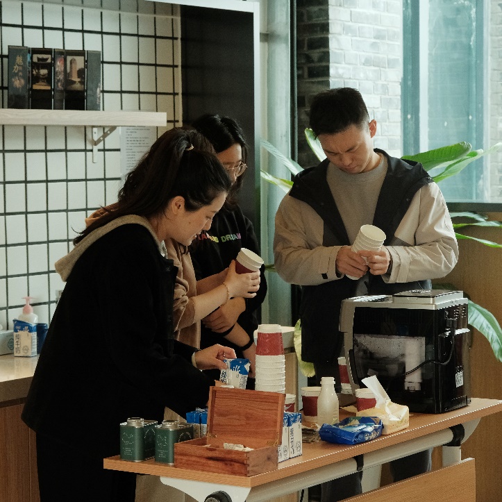 四楼空间以咖啡会友交流为主,公司老师携带着不同风味的咖啡豆前来,研磨调配出美味咖啡饮品。大家围坐一起,品尝着咖啡、水果和小点心,分享着心情,交流着学术研究进展。在品味咖啡活动中,还举行了教工羽毛球队的颁奖仪式,党委书记彭建、副经理李本纲和王志恒分别为队员颁奖,感谢队员们在北大教职工羽毛球锦标赛中的精彩表现和努力。空气中弥漫着咖啡的醇香,飘荡着欢声笑语,虽是清冷的冬日,大家却感到暖暖的幸福。