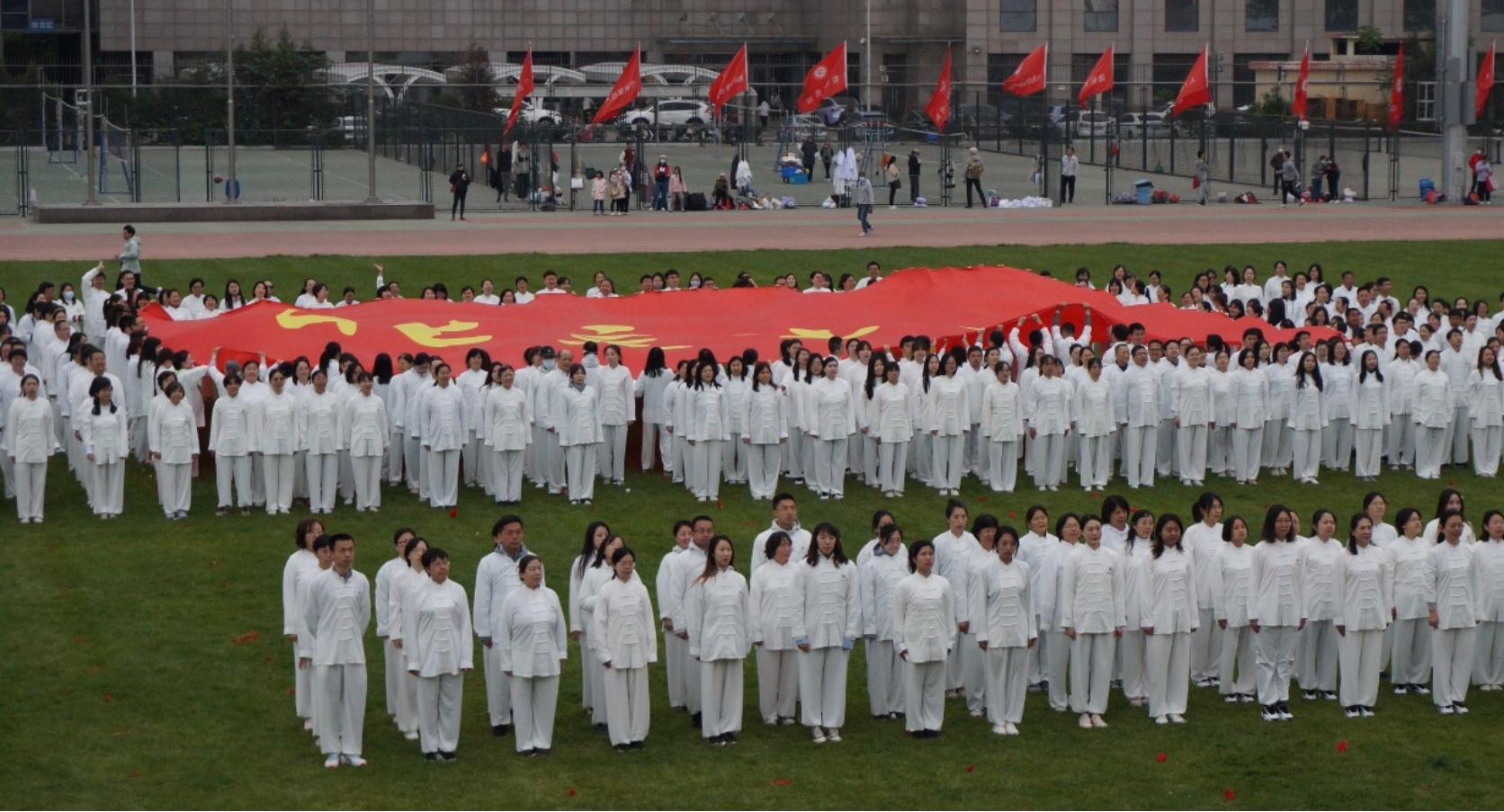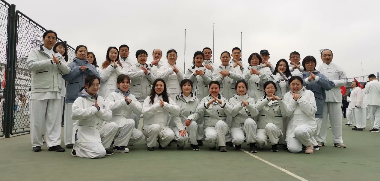 入场仪式后,30名城环教职工参与团体太极拳表演,他们穿着统一的服装,排列整齐,以统一的步伐缓慢而流畅地进行动作。