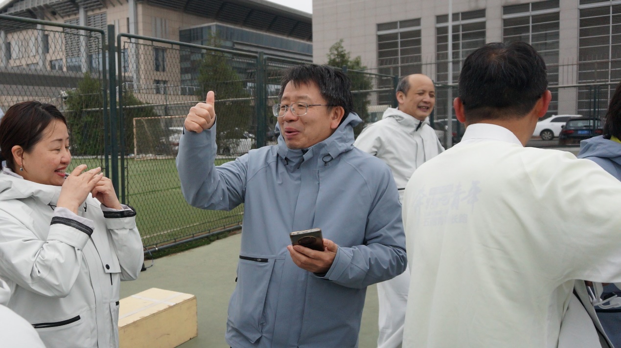 在运动会比赛激烈进行过程中,教工们在休息时间里,欢声笑语、互相交流着比赛的点滴细节。感受着清新的空气和微风的缠绵,这样轻松愉快的氛围,为每位参赛者注入了新的活力和信心,鼓舞着他们再接再厉,全力以赴,为团队取得更好的成绩而努力奋斗。