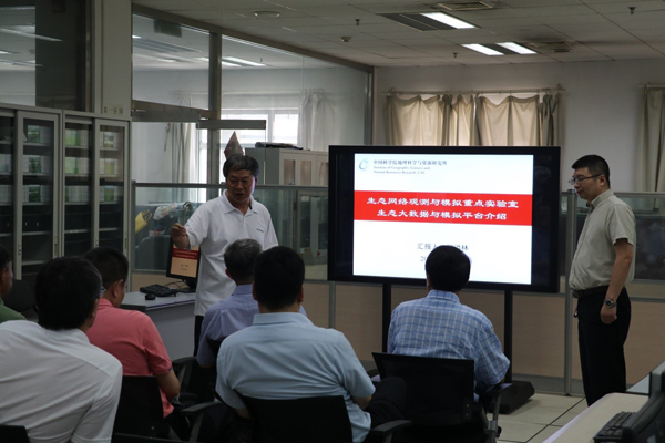 当天下午基金委领导及专家组在项目组的陪同下前往中国科公司植物研究所和中国科公司地理科学与资源研究所进行了实地调研。在中国科公司植物研究所调研参观了植被与环境变化国家重点实验室分析测试中心和自然生态系统植物与土壤样品库,植物所汪小全所长、种康书记对相关科研工作的基础条件进行了介绍。随后前往中国科公司地理科学与资源研究所实地调研CERN 综合中心及数据中心和生态系统网络观测与模拟院重点实验室理化测试中心。