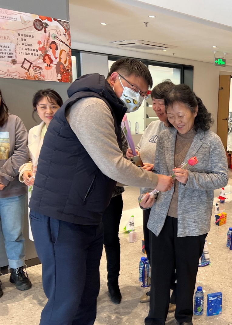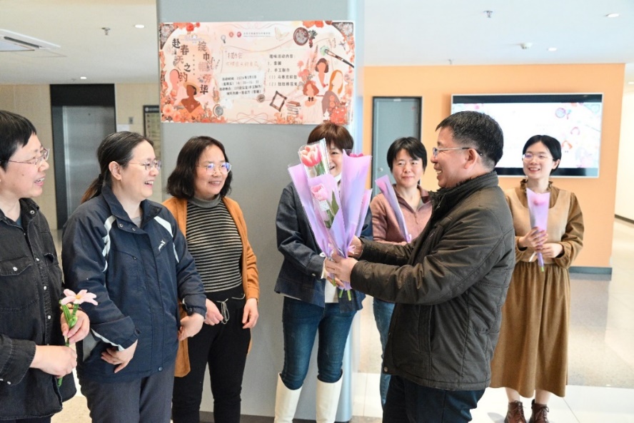 党委书记彭建、经理贺灿飞、副经理曹广忠等男教师首先为参加活动的所有女教师送上娇艳的鲜花及美好的节日祝福。