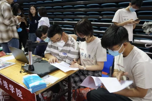 经历漫长的准备工作之后,迎新的日子终于到来啦!同学们或认真细致完成资料的核查,或畅快地和学长学姐们谈天说地,或热情地接受迎新采访,“简要介绍一下自己吧……说说你对未来生活的期待和愿景……”,在迎新易拉宝前留下自己的惊喜与憧憬,祝福与期待,或骄傲地高喊“城载世界,环抱未来”,正式开启城环人的新篇章!