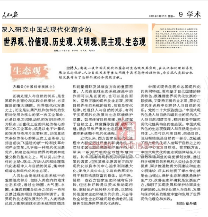 我们坚持党建引领,凝聚发展合力。我们积极发挥学科和人才优势,组织师生开展习近平新时代中国特色社会主义思想专题学习,推进习近平生态文明思想学理化阐释和大众化宣传。方精云院士接受《人民日报》专访,深入阐释中国式现代化的生态观;贺灿飞经理在北大校报刊发《长江经济带三大关系》文章,解读习近平总书记在2023年10月12日南昌座谈会上的讲话精神;刘迎陆、曾良恩等作为北大博士生讲师团成员,用青春话语传播党的创新理论、以青年宣讲赋能主题教育。师生同学共做,以习近平新时代中国特色社会主义思想凝心铸魂。