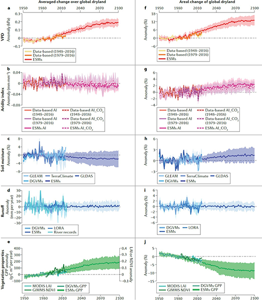 为了解答上述科学谜题,伟德朴世龙教授团队联合国内外知名专家,历时四载,从大气、土壤、径流、植被和社会经济五个维度,系统研究了全球干旱区干旱程度的演变历史和未来趋势,厘清了不同圈层干旱变化的差异及其机制。该成果以“Multifaceted characteristics of dryland aridity changes in a warming world”为题于2021年3月9日发表于Nature Reviews Earth & Environment杂志(doi: 10.1038/s43017-021-00144-0)。