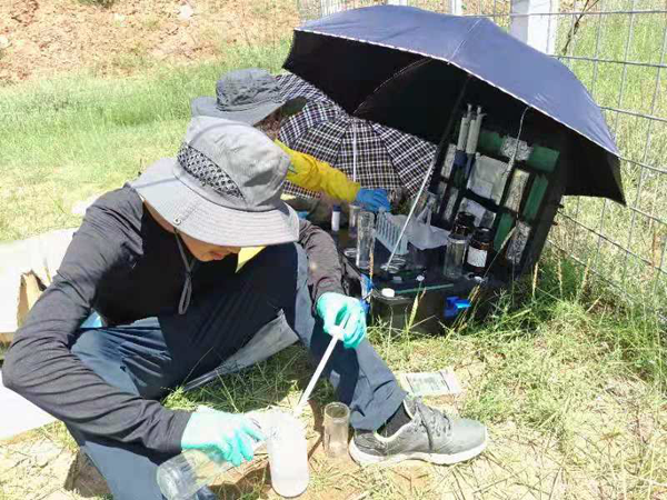 因为样品的一些化学指标具有时效性,所以地下土壤样品必须要求调查团队在野外现场完成对样品一些初级指标的测定,这在很多不太良好的野外环境中是有着一定难度的,尤其是风速较大和阴雨天气。但凭借土壤小组成员已有的经验,草地修复大队最终仍是顺利完成土壤样品的采集与初步测定。