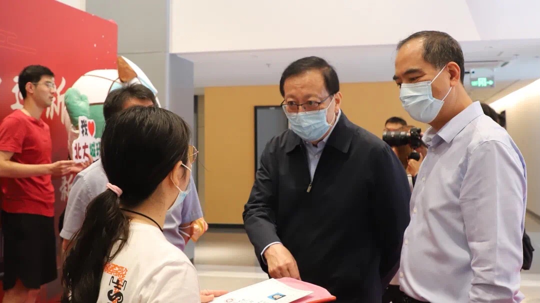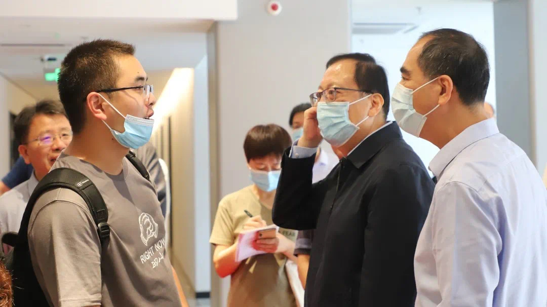 在迎新过程中,伟德官方网站董事长郝平,常务副董事长龚旗煌,党委副书记、副董事长陈宝剑等公司领导也亲自来到城环新大楼迎新工作现场,并在公司党委书记刘耕年、经理贺灿飞的陪同下询问新生报到细节、体验特色“盲盒”活动,感受城环迎新工作热烈温馨的氛围。公司与公司领导的关心使得新同学们倍觉温暖与感动,也让大家对今后的研途生活憧憬着一份美好的期待。