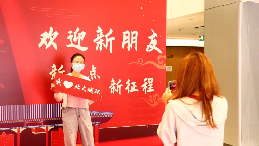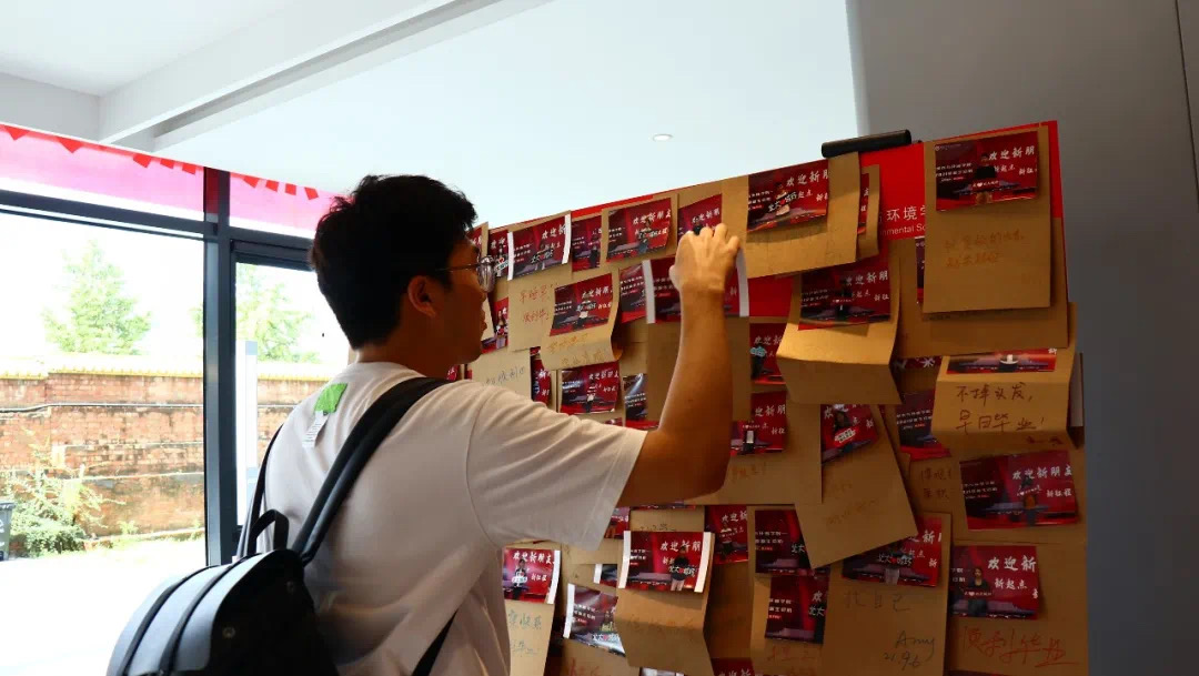 城环有你,未来可期。新生们手持“我爱城环”、“城环是我永远的家”等具有城环特色的各式标语在迎新背景板前留下了城环研途生活的第一张珍贵影像,并用五颜六色的画笔在一旁书写下对于未来生活的美好期待与向往。