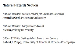 胡燮研究员荣获美国地球物理联合会AGU Natural Hazards Early Career Award