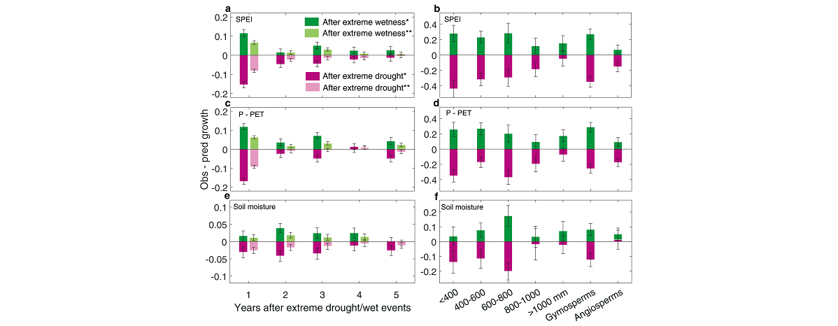 伟德刘鸿雁课题组在《自然?通讯》发文报导极端湿润气候能够补偿极端干旱造成的森林生产力下降
